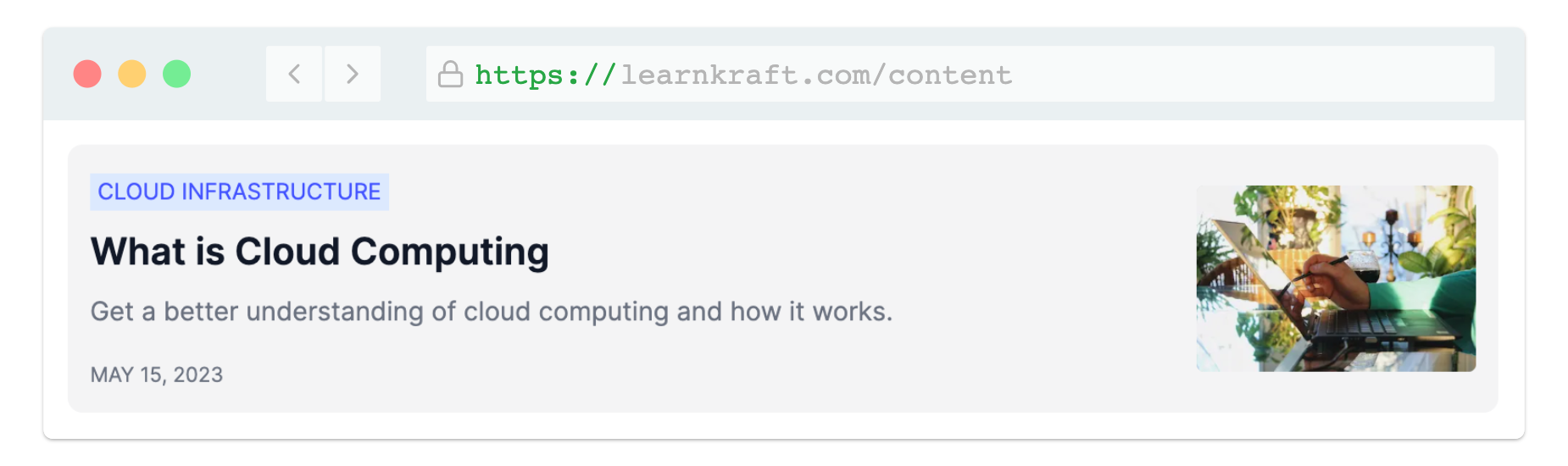 Let’s say you arrived at the Learn Kraft website and clicked on the article link that says ‘Cloud Computing’.